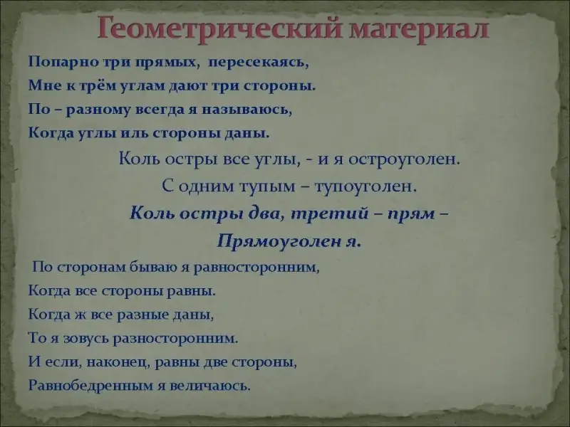Межпредметные связи: геометрия, окружающий мир.