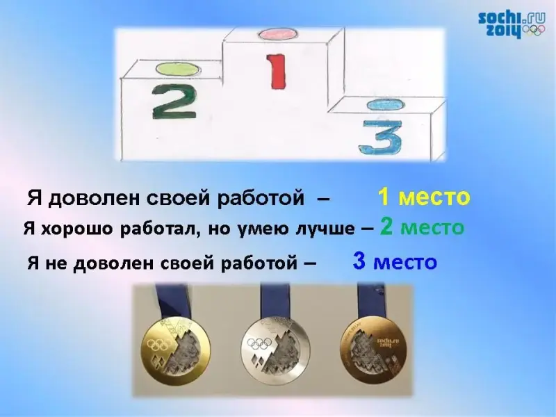 Мысленно поставьте себя на пьедестал почета, какую медаль вы заработали на уроке? (золотая, серебряная, бронзовая)