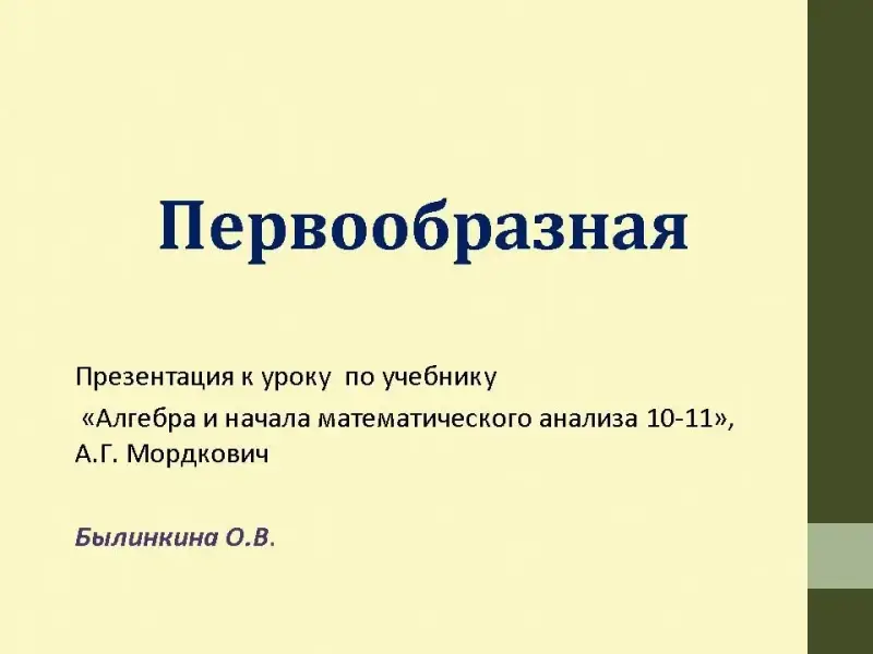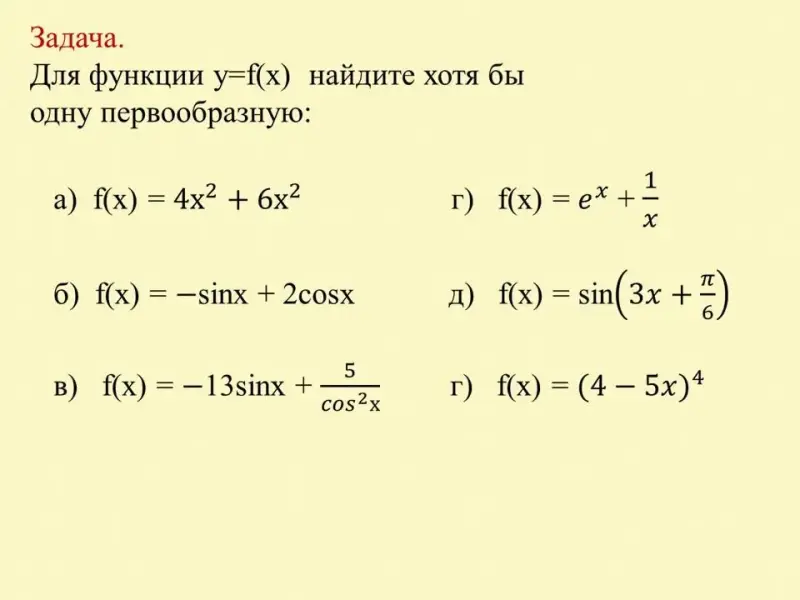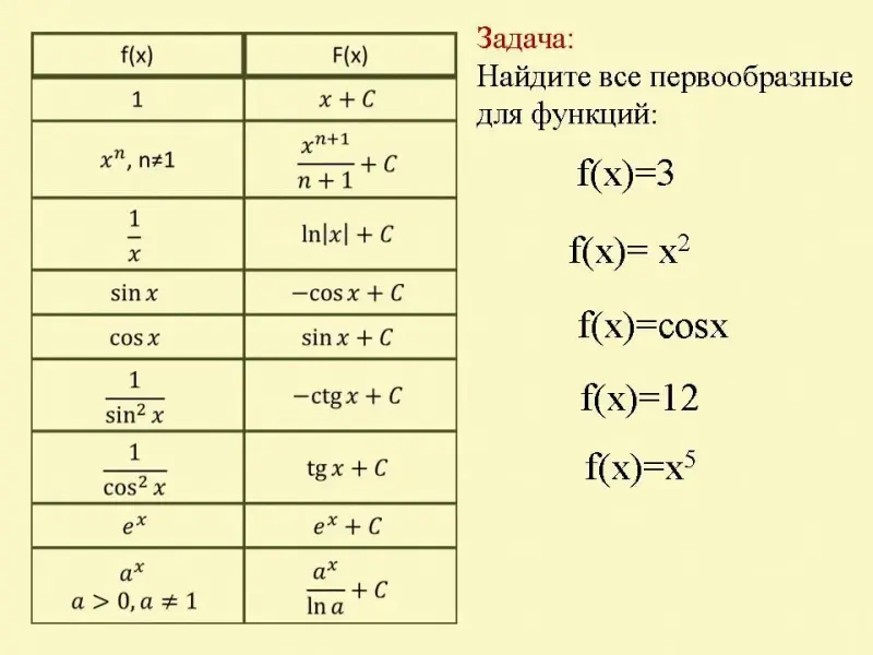 Знакомство с формулами нахождения первообразных и их отработка. (Презентация, слайд 13).