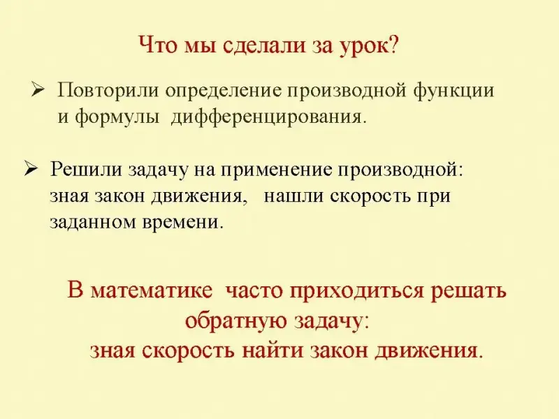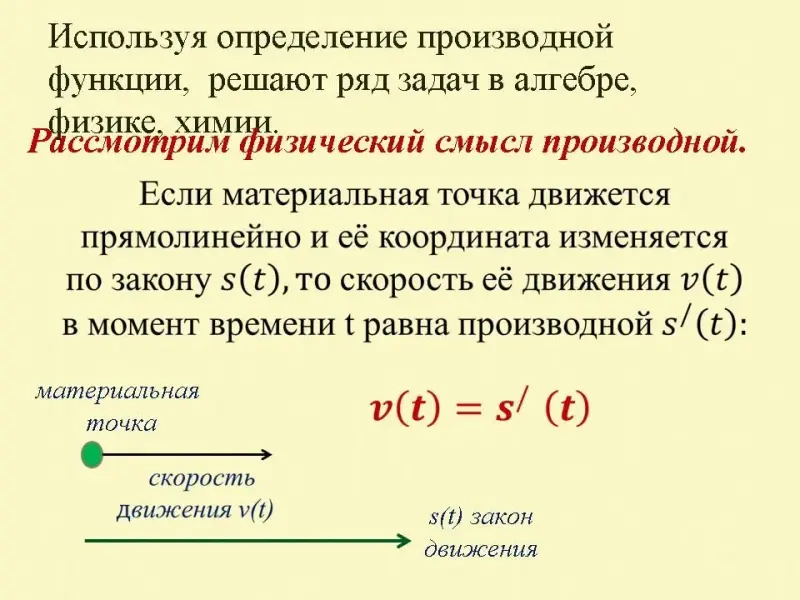 1. Повторение физического смысла производной. (Презентация, слайд 5).
