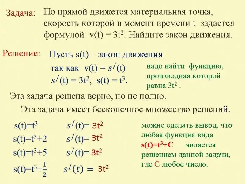 4. Решение задачи: По прямой движется материальная точка, скорость которой в момент времени t задается формулой v(t) = 3