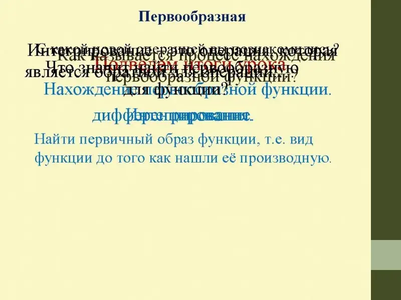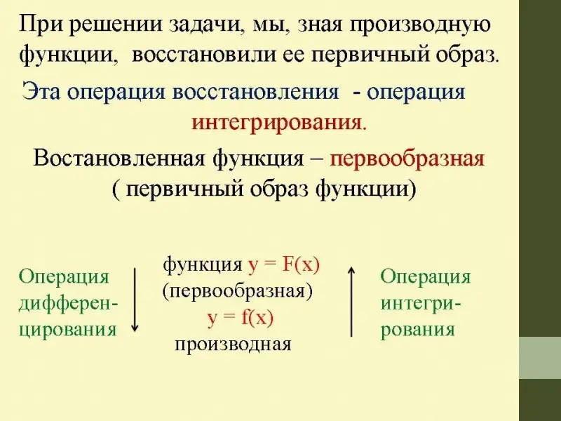 Определение первообразной. (Презентация, слайд 9,10,11).