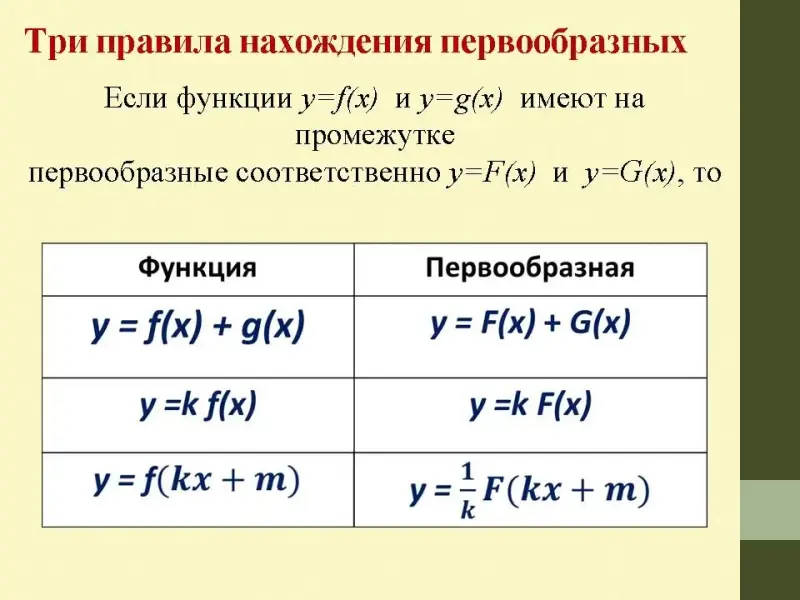 Знакомство с правилами нахождения первообразных. (Презентация, слайд 14).