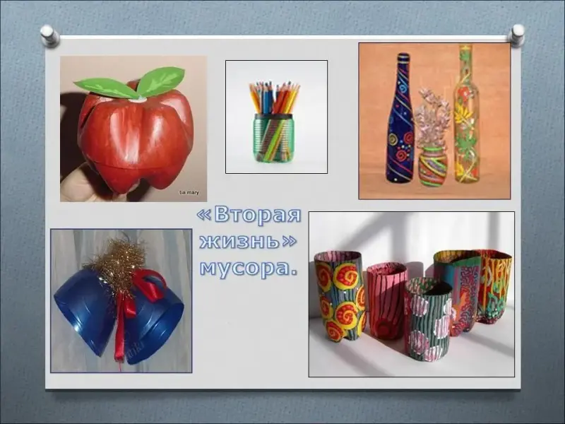 - Использовать свой материал как пособие для ознакомления других учащихся с примерами практического применения и использования бытового мусора.