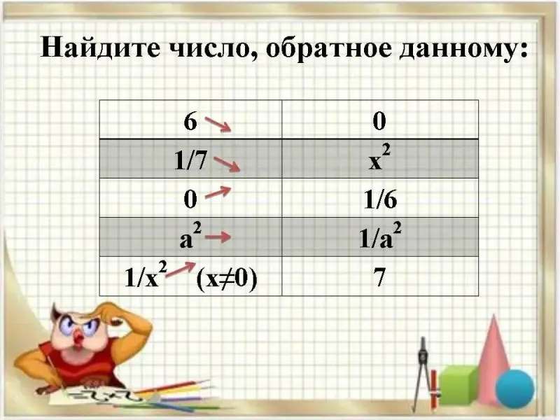 3. Найдите число, обратное данному: 6, 1/7, 0, а2, 1/x2 (x?0)/