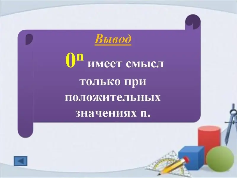 Вывод. 0n имеет смысл только при положительных значениях n.