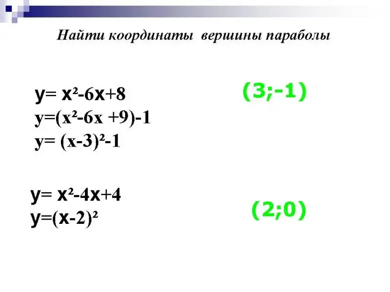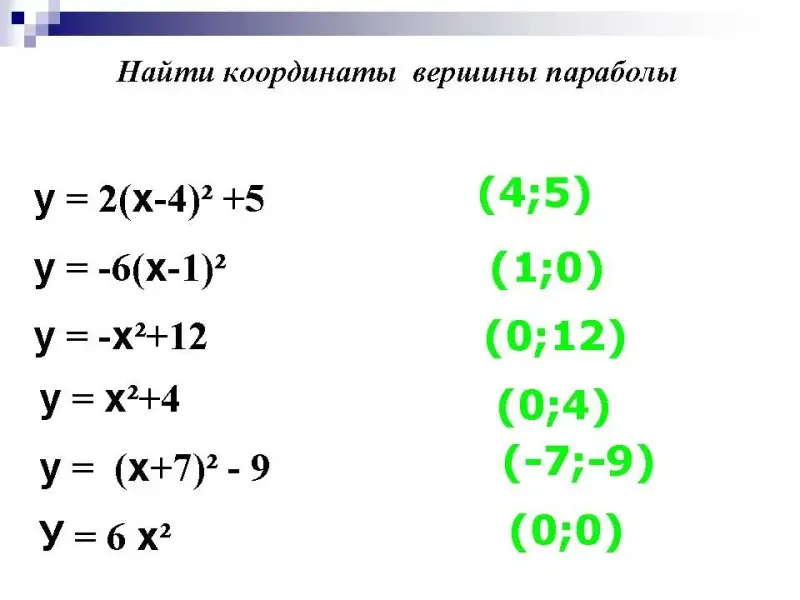 - Найти координаты вершины параболы