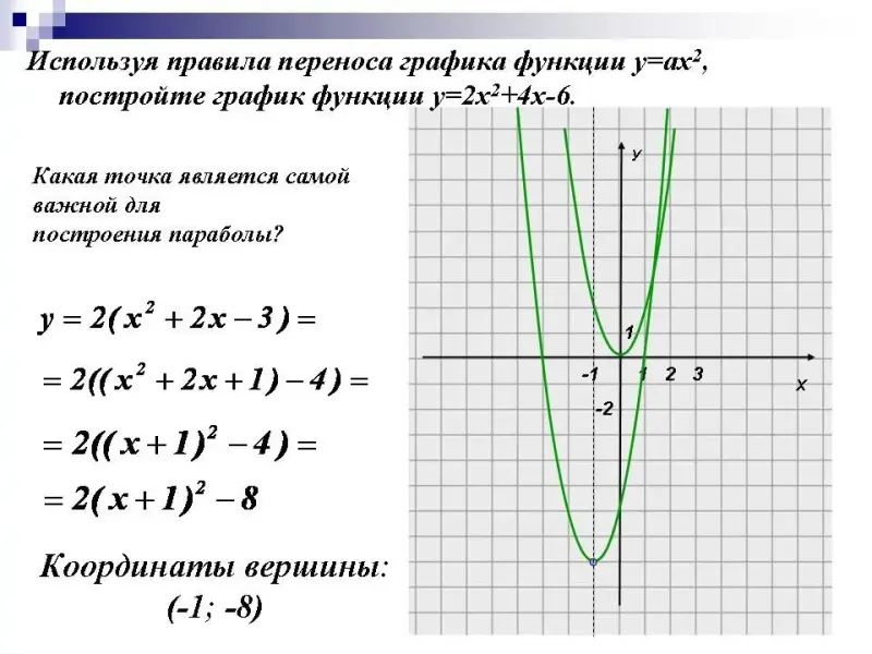 - Используя правила переноса графика функции у=ах2, постройте график функции у=2х2+4х-6