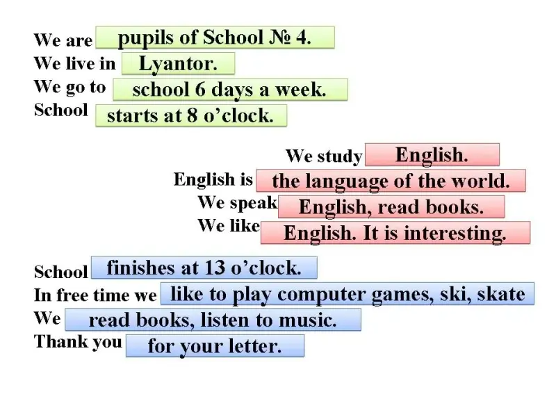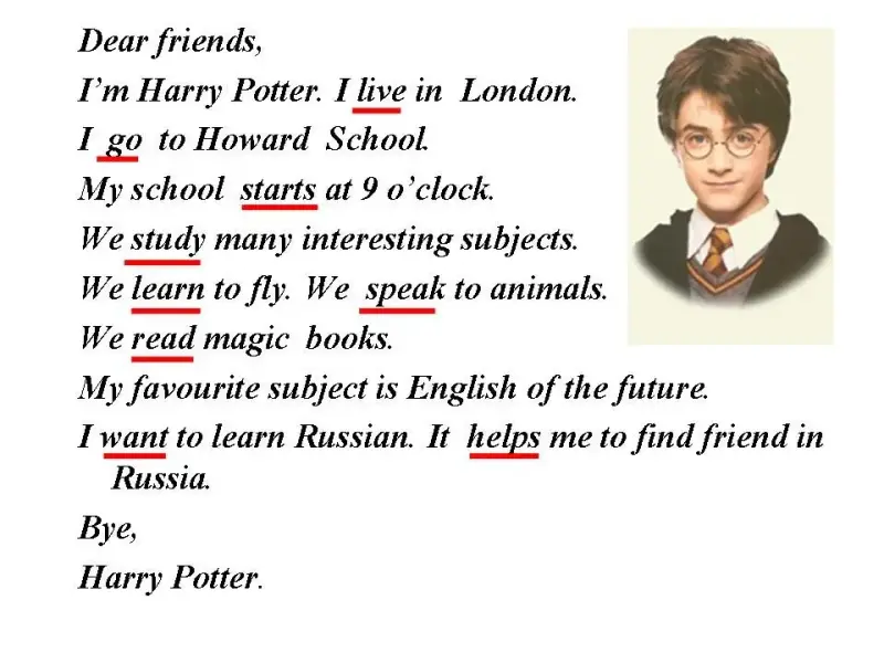 Т: Гарри Поттер никогда не был в русской школе. Давайте напишем ему письмо и расскажем о нашей школе, о своих любимых предметах.