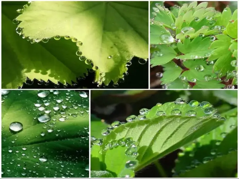 Слайд 12. Доказательством наличия корневого давления служит природное явление которое называется гуттация или плач растений. Известно, что при высокой влажности воздуха и чрезмерной увлажненности почвы на листьях растений появляются капельки воды.