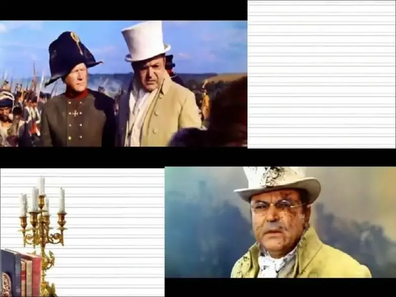- Соблюдая историческую правдоподобность, автор с симпатией, уважением относится к Кутузову и иронично изображает Наполеона, подчёркивая его неестественность.