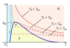 - Если температура газа ниже критической, то изотермическое сжатие переводит его сначала в состояние насыщенного пара, а затем в жидкость