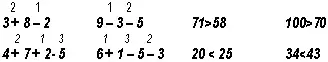 | 12-3>12-4 | 8+5<5+8 |