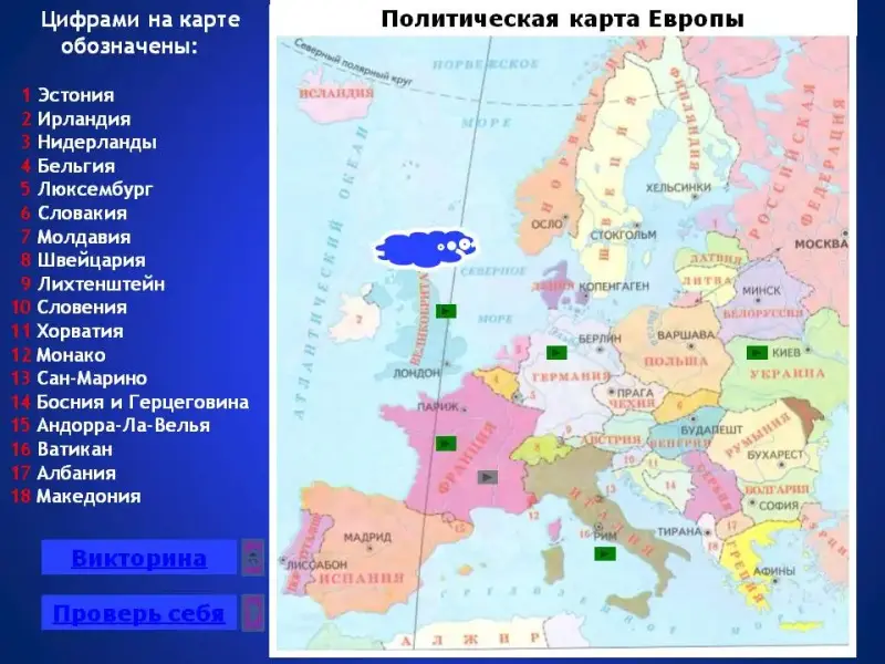 - Какая карта нам в этом поможет? (Политическая карта Европы) (Слайд 5)