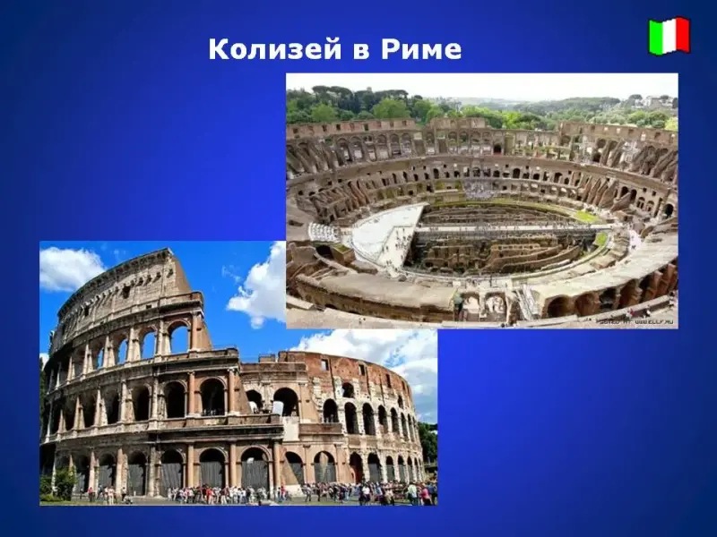 - Как называли театр в Риме, где проходили битвы гладиаторов? (Колизей)