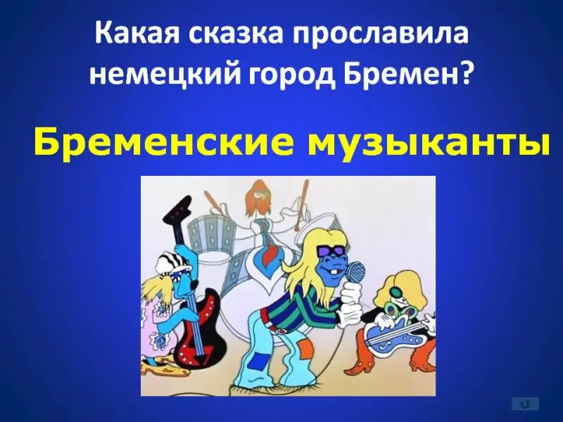 - Какая сказка прославила немецкий город Бремен? (Бременские музыканты)