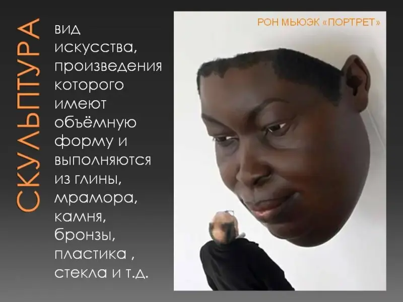 Скульптура (лат.sculptura, от sculpo - вырезаю, высекаю) - ваяние, пластика - вид изобразительного искусства, произведения которого имеют объёмную форму и