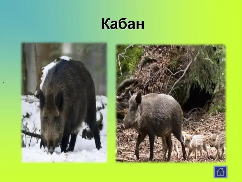 Слайд № 24.Зима - наиболее трудный период в жизни кабанов. Зимой кабаны добывают корневища и клубни диких растений, выбирают на полях оставленные при уборке корнеплоды, а в урожайные годы собирают в лесах орехи и желуди.. Местные сторожилы рассказывали, что 20 лет назад кабаны часто встречались в лесах вблизи санатория, но сейчас они покинули наши леса из-за деятельности человека.