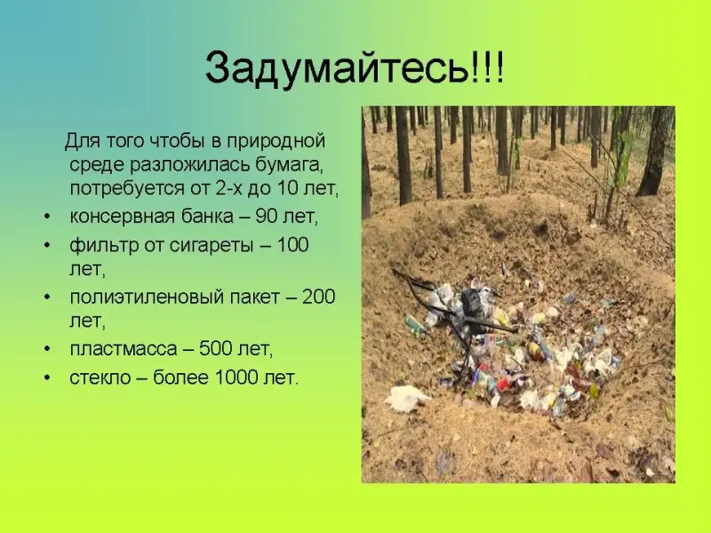 Для того чтобы в природной среде разложилась бумага, потребуется от 2-х до 10 лет,