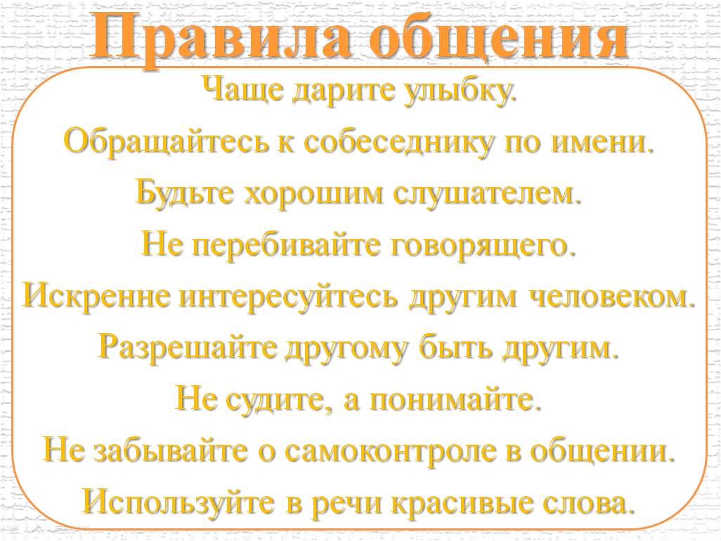 Слайд: правила общения: