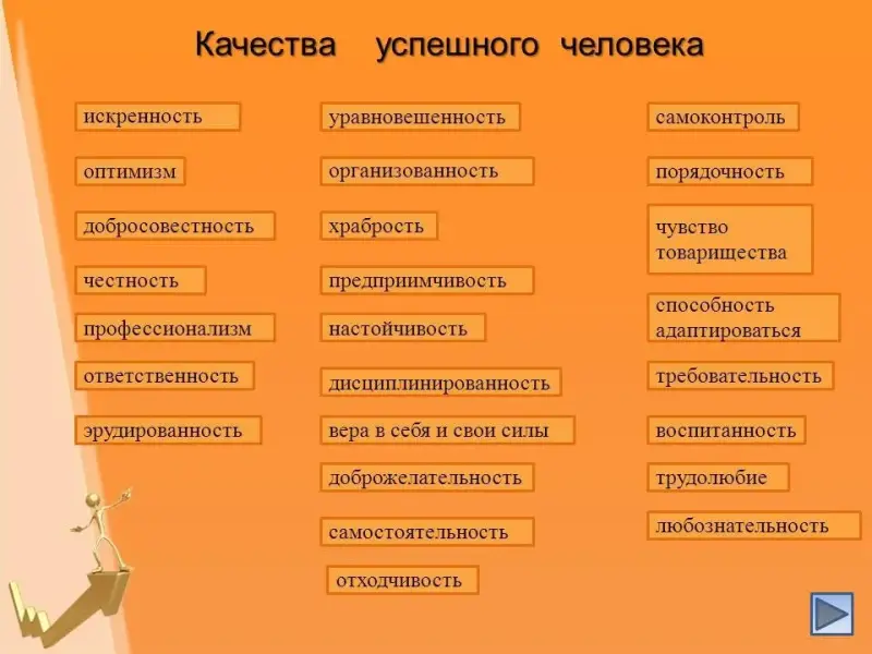 - Давайте подробнее определим, какими же качествами должен обладать успешный человек?