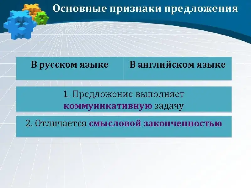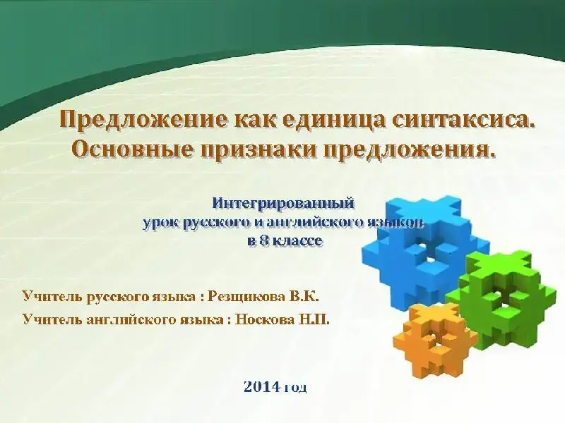 Интегрированный урок русского и английского языков по теме "Предложение как единица синтаксиса. Основные признаки предложения". 8-й класс