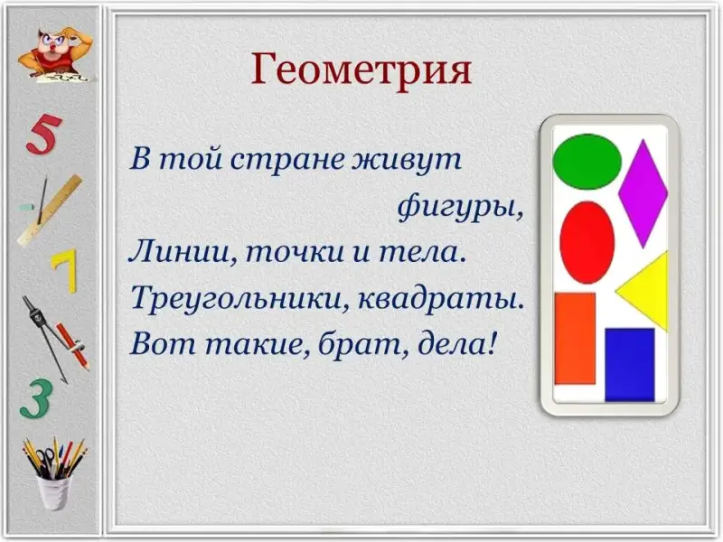 - Чертить, измерять, конструировать, узнавать новые геометрические формы. |