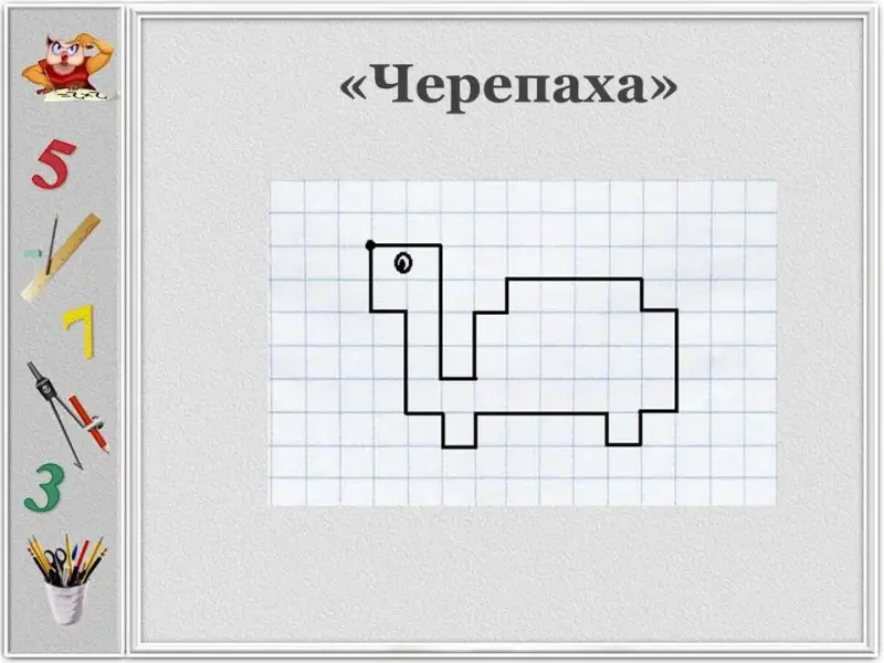 Диктую по клеточкам рисунок «Черепаха». (слайд 7) |