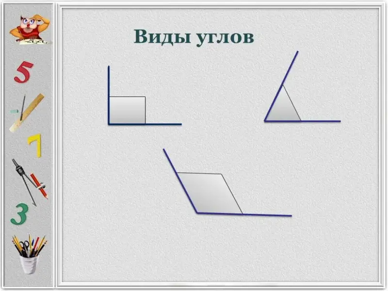 С помощью модели прямого угла определяют виды углов, делают взаимопроверку. |
