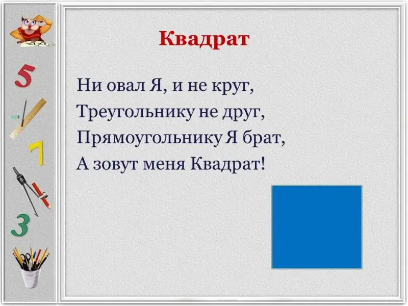 - Назовите, какие названия имеет данная фигура (прямоугольник)? (слайд 15) |