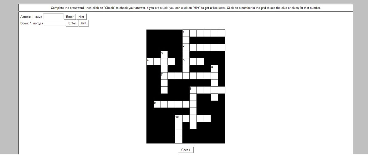 Задание выполняется индивидуально, каждый ученик работает на макбуке, разгадывая кроссворд на тему "Времена года и погода" (Рисунок 1) |