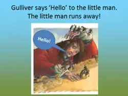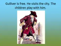 Учитель показывает детям видеоролик из фильмов о Гулливере. Они делают вывод, с каким великим произведением учащиеся познакомились.
