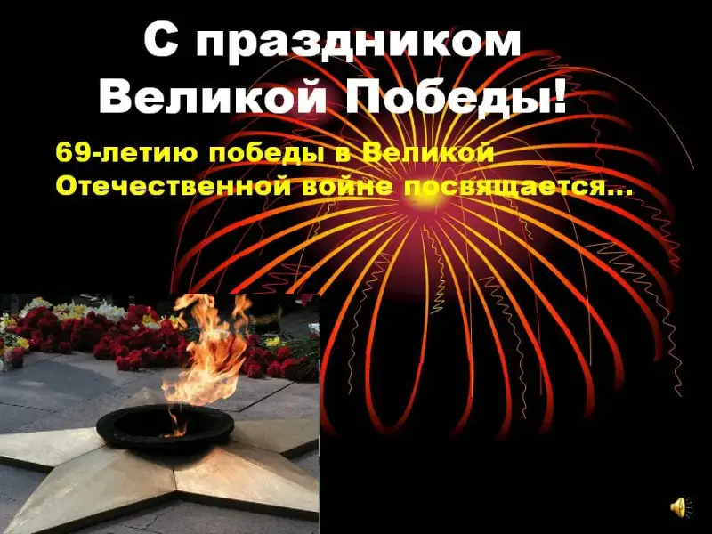 Ведущий. 9 мая - День Победы в Великой Отечественной войне 1941 - 1945 гг. Много времени прошло с тех пор, но в памяти народной и поныне живы безмерные страдания военных лет и великое мужество народа. Давайте вспомним то героическое время и отдадим дань памяти нашим ветеранам и тем героям, которые погибли, защищая свою Родину.