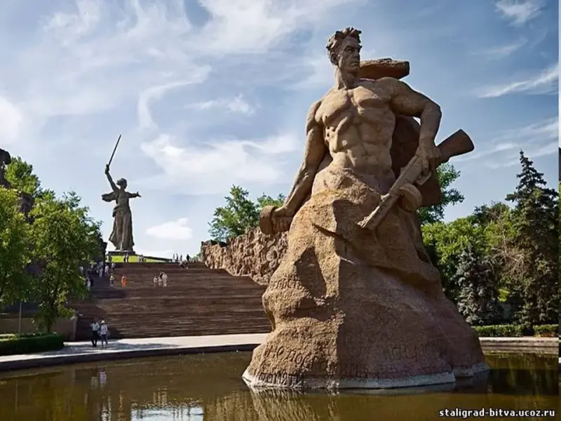 Был воздвигнут, чтоб стоять в веках, Памятник советскому солдату С девочкой спасенной на руках. (Г. Рублёв) |