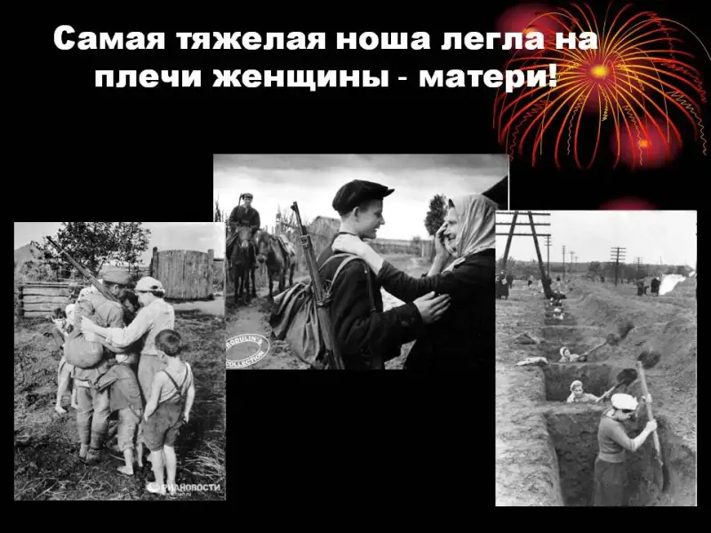Ведущий: (Слайд 10) В тылу на полях и заводах люди совершали трудовой подвиг, помогая нашим воинам. Особенно тяжело приходилось женщинам.