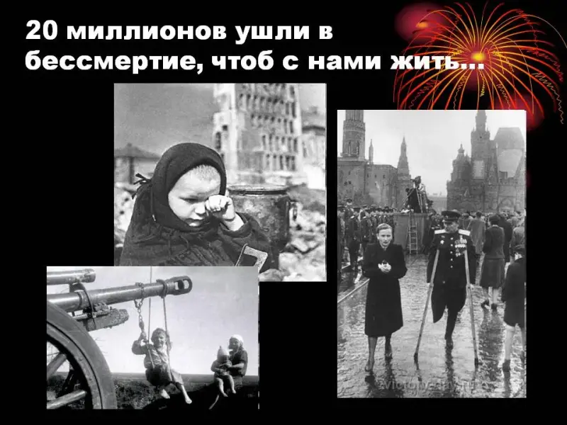 Ушли в бессмертие, чтоб нам с тобою жить.5. Война закончилась. И пушки замолчали.