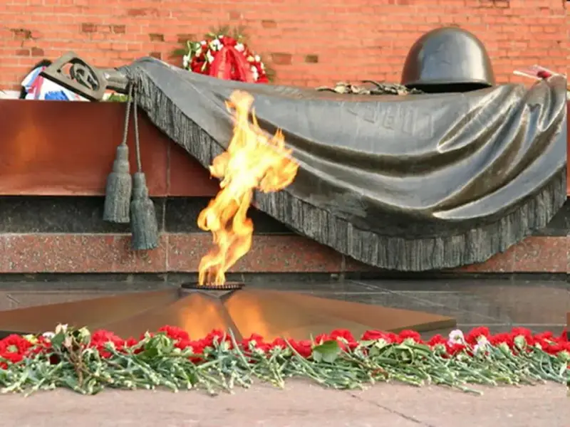 Все судьбы в единую слиты.2. А в Вечном огне видишь вспыхнувший танк