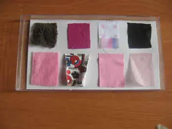 Детям предлагается панно с различными видами тканей. Ребенок тактильным путем должен установить различия текстильных изделий и рассказать о своих чувственных впечатлениях.