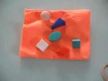 Цель: учить детей на ощупь определять геометрическую фигуру, развивать органы чувств (осязание).