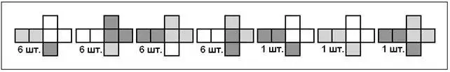Для игры нужны 8 кубиков, окрашенных в два цвета, как показано в приводимых развертках (рис. 2). С этими кубиками можно решить несколько задач.