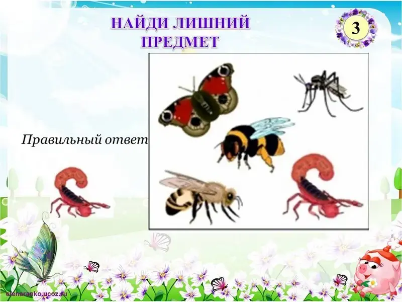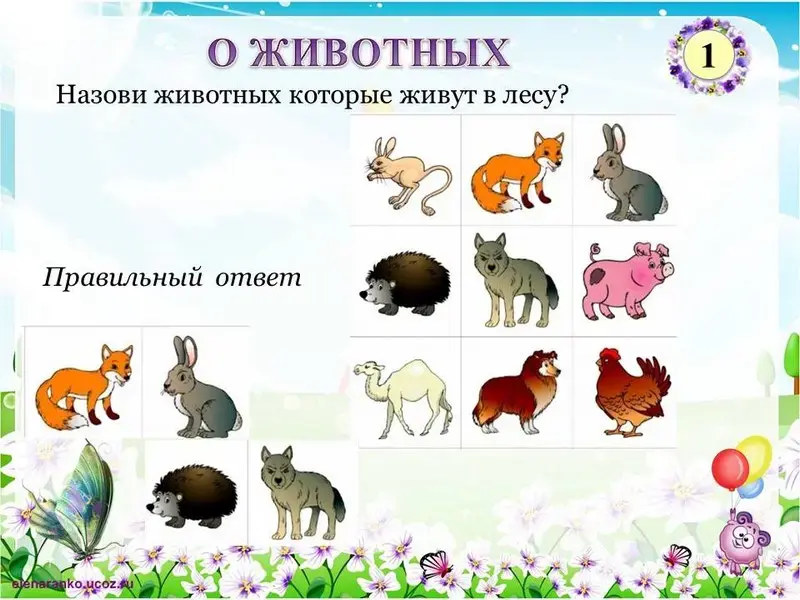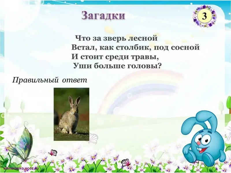 После ответа детей, ведущий предлагает проверить правильный ответ (за номинации загадки, о животных, найди лишний предмет) нажимает на бабочку появляется правильный ответ, затем на <enter> за каждый правильный ответ команда откладывает фишки соответственно цифре вопроса.