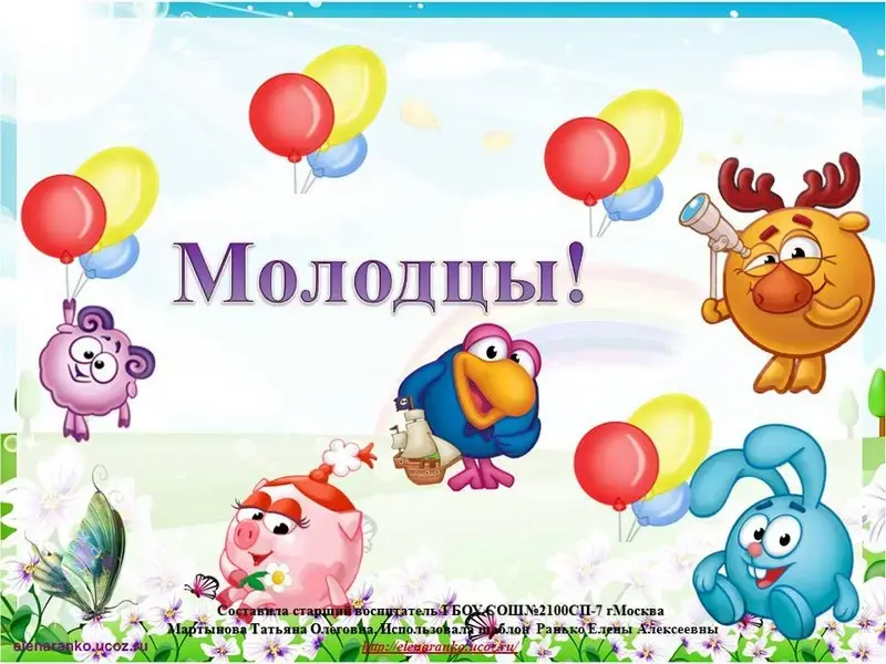 После того как дети угадают все номинации, вместе с ведущим подсчитываю очки. награждаются подарками и воздушными шариками от смешариков.