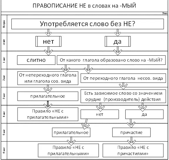 У.: Действительно, мы сегодня говорим об особой группе слов на -МЫЙ.(высвечивается запись в 3 графе табл., слайд 6.) Многие слова не употр. Без НЕ. ОНИ ПИШУТСЯ СЛИТНО