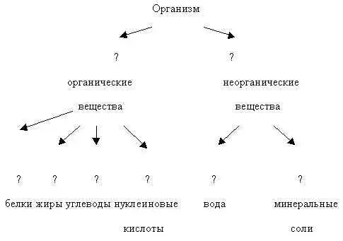 Организм состоит из множества веществ. Давайте их классифицируем. Перед вами список различных веществ: вода, белки, углеводы, минеральные соли, жиры, нуклеиновые кислоты. Разделите их на группы и дайте названия группам.