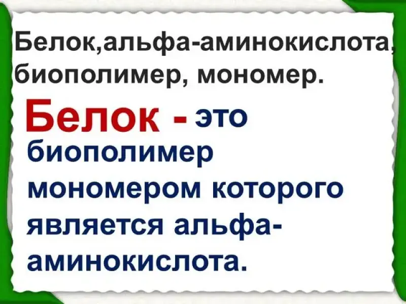Белок, альфа - аминокислота, биополимер, мономер. (Белок- это биополимер, мономером которого является альфа - аминокислота).