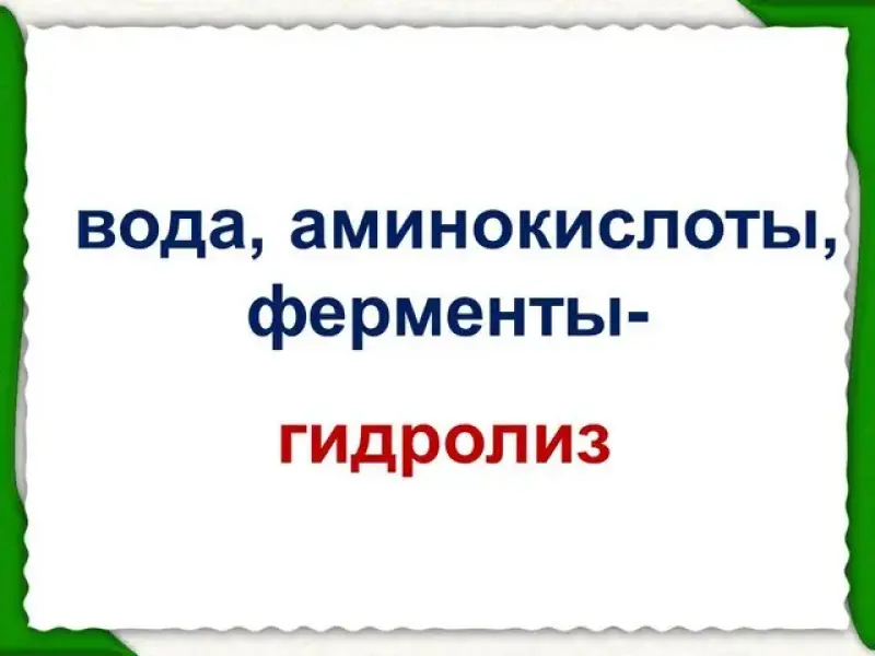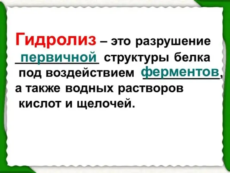 - Какой процесс называют гидролизом белков? Вставьте пропущенные слова. (Слайд 13)