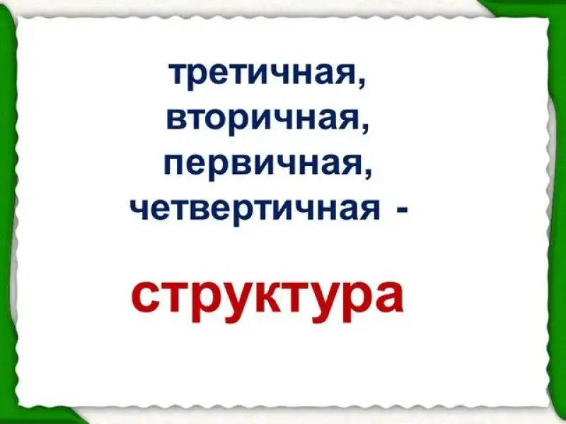 - Какие структуры белков вы знаете? (первичную, вторичную, третичную, четвертичную)