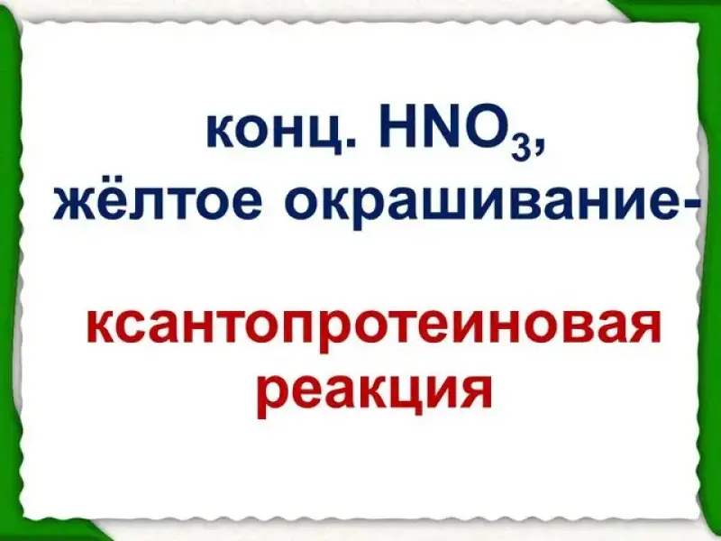 б) ксантопротеиновая (на ароматические кольца) (видеофрагмент, Слайд 11)