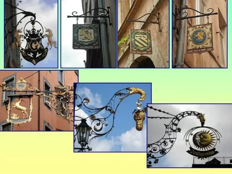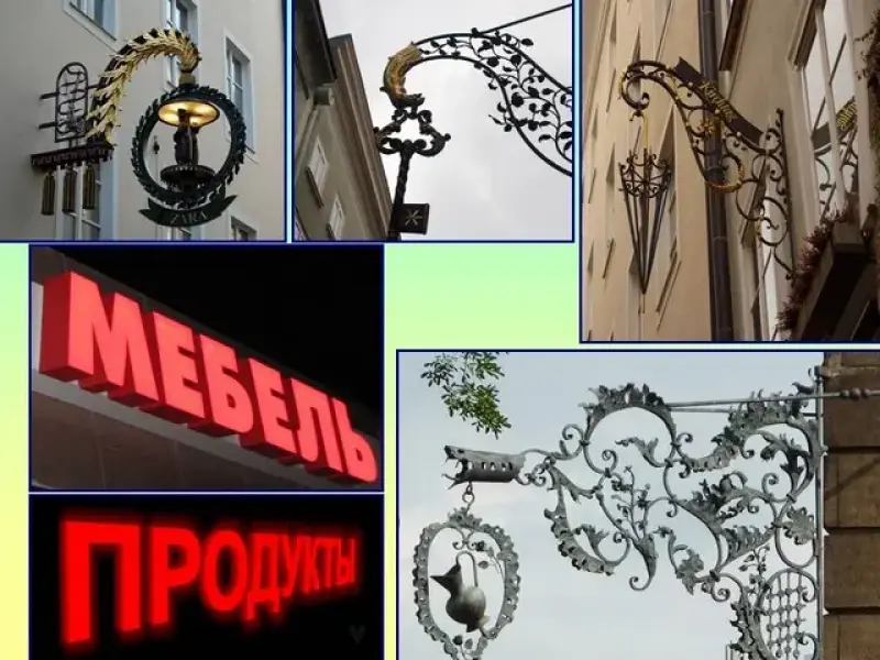 - Что характерно для старинных вывесок? А для современных?