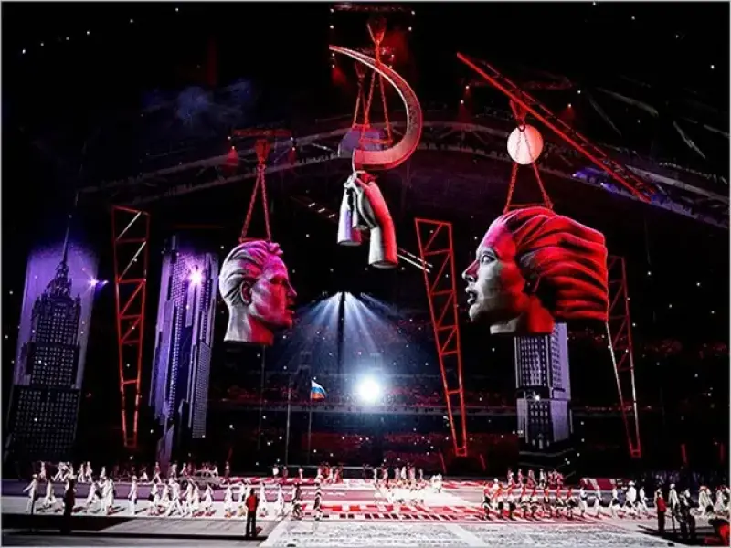 Торжественная церемония закрытия XXII Зимних Олимпийских игр началась 23 февраля в 20:14 по московскому времени на стадионе "Фишт" и продолжалась в течение 2,5 часов. Основной темой шоу стала русская культура глазами европейца. Постановщиком церемонии стал итальянский театральный режиссёр Даниэле Финци Паска. (слайды 30, 31)